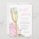 This beautiful design features pink hydrangea blooms, a gold champagne glass and your custom text. Use the template form to add your information.