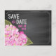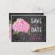 Pink Hydrangea Mason Jar Chalkboard Save the Date Announcement Postcard