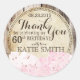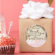Pink hydrangeas and wood planks rustic birthday thank you label design.