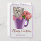 Pink Hydrangeas and Yorkshire Terrier Happy Birthday