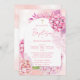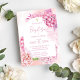 Pink hydrangeas elegant floral arch baptism christening invitation template instant download, botanical watercolor flowers, light pink watercolor background.