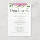 This pink hydrangea directions enclosure card is whimsical yet classic. It's stunning pink flowers, wispy natural foliage, and lovely type allow your directions to stand out. By typing in the most direct routes to your venue you will be making it easy and convenient for your guests to know where they are going so they can enjoy your big day with you. The template is super easy to use. Just select Personalise this template and type in your directions and website information. It will only take a minute to do and you will have the perfect card to be enclosed with your invitations.