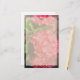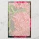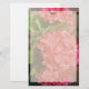 The original photograph by MaeFlowers on this Stationery is a closeup of pink hydrangeas and their jagged edged spring green leaves. The central pompom of flower petals almost fills the design, surrounded by the green leaves and bits of other flower pompoms on each side. There is a sheer sheet of paper, with deckle edges at top and bottom, covering the writing area of the sheet of stationery, allowing the photo to show through in pale tones, and full strength on all four sides. At the top of the pale area, in the centre, is a monogram in black. This can be personalised or deleted. Matching envelope available.