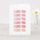 This greeting card keeps things simple and sweet, with the words “I LOVE YOU.” repeated six times in a straight vertical line. Each line sits on a plain white background with lots of open space around it, so your eyes go right to the message. The text starts at the top in a very light blush pink and slowly gets darker as it goes down. By the bottom, the last “I LOVE YOU.” is a warm coral-red, giving the feeling that the love is growing stronger with each line. The letters look like a modern sans-serif style, smooth and easy to read, and the words are centered neatly on the card. There are no characters or objects here, just a clear romantic message that feels direct and heartfelt ❤️. It’s a lovely choice for a partner or someone close, and it says a lot without needing anything extra 💕.