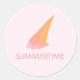Sticker with cool ice cream cone design for summer days. The design consists of an upside down ice cream cone, ice cream in pink colour and text Summertime which you can personalise. The design is customisable and you can change the colour of the background.