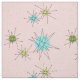 This Pink Iconic Atomic Starbursts Fabric (large print) pattern features iconic atomic starbursts. That’s right! The old school, First Lady Pink coloured background with gold speckles is the perfect backdrop for the vibrant turquoise, soothing celery, and kitschy pear green coloured circles. The spots of colour are sporadically placed in various sizes with overlaying black V shaped lines to form the mod sputnik starbursts. Styled after a 1950’s dish pattern, this retro inspired design has everything you need to be truly mid century modern.
