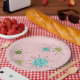 This Pink Iconic Atomic Starbursts Paper Plate (large print) pattern features iconic atomic starbursts. That’s right! The old school, First Lady Pink coloured background with gold speckles is the perfect backdrop for the vibrant turquoise, soothing celery, and kitschy pear green coloured circles. The spots of colour are sporadically placed in various sizes with overlaying black V shaped lines to form the mod sputnik starbursts. Styled after a 1950’s dish pattern, this retro inspired design has everything you need to be truly mid century modern.