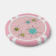 This Pink Iconic Atomic Starbursts Poker Chip pattern features iconic atomic starbursts. That’s right! The old school, First Lady Pink coloured background with gold speckles is the perfect backdrop for the vibrant turquoise, soothing celery, and kitschy pear green coloured circles. The spots of colour are sporadically placed in various sizes with overlaying black V shaped lines to form the mod sputnik starbursts. Styled after a 1950’s dish pattern, this retro inspired design has everything you need to be truly mid century modern.