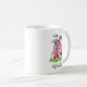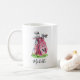 This cute ceramic mug features a stylish pink watercolor golf bag filled with clubs, sitting on a patch of green grass. The design appears on both sides of the mug for easy viewing from any angle. A simple serif initial monogram is placed directly on the bag, seamlessly blending into the artwork. Beneath the monogram, the full name is shown in elegant script typography for a personal touch. The monogram is currently in a dark grey, almost black, to match the bag’s accents, but you can change it to any colour you prefer.