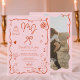 Celebrate the union of love with our enchanting Initials Retro red pink French Wedding Invitation! This hand-drawn illustrated vintage French design exudes elegance and whimsy, featuring delicate squiggles, wavy edge frames, and intricate sketches of food and drinks. From wine glasses to cocktails and delectable treats, the heartwarming details set the stage for a memorable celebration of love. The hand-written font adds a personal touch, while the editable red pink colours allow you to customise the invitation to match your wedding theme perfectly. With a wavy photo at the back, capture precious moments to cherish forever.