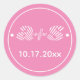 Pink initials with stripes retro 70s wedding Classic Round Sticker. Add a touch of retro charm to your wedding invitations with this round sticker that has a striped design inspired by the 70s. The sticker has a white border on a pink background and features the initials of the bride and groom with stripes of pink and white. This sticker is perfect for sealing your envelopes and adding some personality to your wedding stationery.