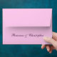 This envelope with its swirl pattern lining makes an elegant choice for your invitation needs. For a different look, you can experiment with different paper types. You can also change the envelope colour and/or the text colour.
