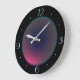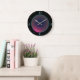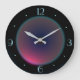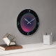 A round moon shape, featuring a pink irridescent hue with blue tinges.A border of black with light blue numerals complete this striking clock .Available in square and round shapes .