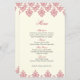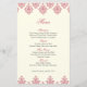 Pink Ivory Damask Arabesque Wedding Menu Card