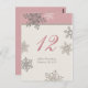 The text on this pale dusty rose or blush pink, taupe brown, and ivory or champagne snowflake winter wedding or special occasion table number card is fully customisable. To change the table number and the names and date, use the personalise option. For these, you must change the table number, change the quantity to 1, and then add it to your cart and repeat the process for all the table cards you need. For more extensive changes to the card including changes to the font, font colour, font size, or text placement, use the customise option. Invitation