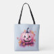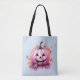 Pink Jack-O' Lantern Light Blue Halloween Tote Bag