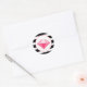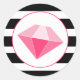 A sticker featuring an illustration of a pink jewel inside a circle over a black and white striped background. Look for matching treasure chest pirate party invitations at Jill's Paperie.