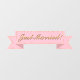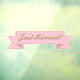 Pretty wedding window cling that looks like a pink and gold banner, with custom text reading Just Married! Perfect for the back window of the newlywed's get away car.