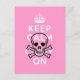 Pink Keep Calm and Carry On Skull Humour Postcard