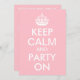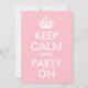 Customisable text areas on a pink and white "Keep Calm and Party On" parody for a birthday party.