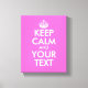 Pink keep calm canvas print | Customisable text. Create your own Keep calm and carry on parody print or poster. Personalise this template with your own funny quote or saying and custom background colour.