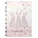 Embrace whimsical charm with this enchanting notebook featuring three delicately patterned pink bunnies adorned with bows. The gentle pastel hues and sparkling stars create a dreamy atmosphere, perfect for capturing your thoughts or planning special occasions. Customisable Name – Personalise it with any name for a unique, one-of-a-kind touch. Ideal for gifts or personal use, this notebook adds a sprinkle of magic to everyday notes. Order today to add a festive touch