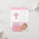 Pink Lace Diamond Cross Photo Baptism Christening Invitation