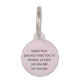 I love this tag - it has a cute funky design and matches my dog's purple collar. It also came with a rubber band to put around it - I originally thought it was just to protect the tag, but it actually glows in the dark too! Which I think is very cool. especially if you're walking your dog in the dark. The printing is awesome. Very clear, with lots of space for the details I wanted on the tag