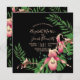 Pink Lady Slipper Orchid Wreath on Black Wedding Invitation