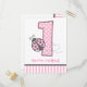Cute 1st birthday design with a pink and grey ladybug flying over a big number 1 filled with a pink and white polka dot pattern. Add your own custom text. PinkInkArt original!