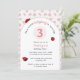 This cute pink ladybug girls birthday party invitation features hand-drawn ladybugs on a pink and white polka dot background, perfect for a toddler or baby girl’s birthday celebration. Personalize the age, name, and all your party details in minutes.