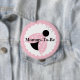 Cute Mummy-to-be baby shower button pink done in pink, with a white scalloped round centre with a pink, white, and black ladybug. Black text, across the middle reads, Mummy-To-Be. Personalise the text to read what you want.