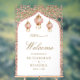 Amaze your guests with this elegant wedding welcome sign featuring a beautiful islamic pattern and cute hanging lanterns.