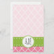 Pink Latticework, Quatrefoil, Trellis, Monogram Stationery