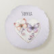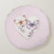 Pink Lavender Floral Heart Butterflies Birthday Round Cushion