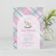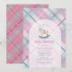 Pink Lavender Plaid Rocking Horse Girl Baby Shower Invitation