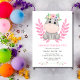 These cute birthday party invitations feature a cute watercolor hippopotamus with flower on head and beautiful pink leaf. Personalise the birthday party invites by adding your child's name, age, and party details.