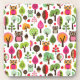 pink leaf tree retro owl pattern coaster