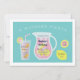 Our refreshing summer birthday party invitations feature your party details inscribed on all the trappings of that favourite summer beverage: a whole lemon, lemon slice, glass of pink lemonade and a pitcher, all on a tropical turquoise background.