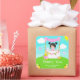 This cute and whimsical sticker features a black hair girl with fair skin at a pink lemonade stand which is decorated with flowers and bunting. In the background is a blue sky, sunshine and butterflies. The text combines decorative and sans serif fonts for a stylish and modern look. This is perfect for a summer birthday party.
