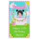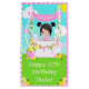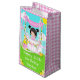 This cute and whimsical birthday gift bag can be personalised with a name or title such as daughter, granddaughter, niece, friend etc. It features a black hair girl with fair skin at a pink lemonade stand which is decorated with flowers and bunting. In the background is a blue sky, sunshine and butterflies. This is perfect for a summer birthday party.