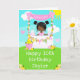 This cute and whimsical birthday card can be personalised with a name or title such as daughter, granddaughter, niece, friend etc. It features a black hair girl with dark skin at a pink lemonade stand which is decorated with flowers and bunting. In the background is a blue sky, sunshine and butterflies. The text combines decorative and sans serif fonts for a stylish and modern look. This is perfect for a summer birthday party.