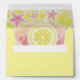 Fruity, fizzy, sweet and sour... slices of lemon, bubbles and stars float in pink lemonade. Envelope with a pink, yellow, orange and white customisable design for you to personalise with your own text, images and ideas. Image created from an original coloured pencil and ink drawing by Jess Perry.