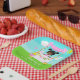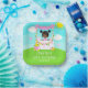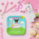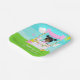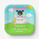 This cute and whimsical plate features a black hair girl with dark skin at a pink lemonade stand which is decorated with flowers and bunting. In the background is a blue sky, sunshine and butterflies. The text combines decorative and sans serif fonts for a stylish and modern look. This is perfect for a summer birthday party.