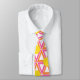 This necktie has a geometric design of repeating pink and orange triangles with yellow circles on top on a field of off-white. Want the same design in different colours? Message me.
