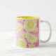 Fruity, fizzy, sweet and sour... slices of lemon, bubbles and stars float in pink lemonade. Mug with a pink, yellow, orange and white customisable design for you to personalise with your own text, images and ideas. An original coloured pencil and white ink drawing by Jess Perry.