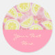 Fruity, fizzy, sweet and sour... slices of lemon, bubbles and stars float in pink lemonade. Sticker with a pink, yellow, orange and white customisable design for you to personalise with your own text, images and ideas. An original coloured pencil and white ink drawing by Jess Perry.