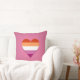 Throw pillow with an image of a heart in the colours of the lesbian pride flag, on a pink background.
