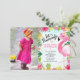 Pink Let's Flamingle Floral Foliage Photo Birthday Invitation