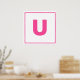 Pink letter U alphabet on white background with pink border. Help your little one learn the alphabet with this letter U design.